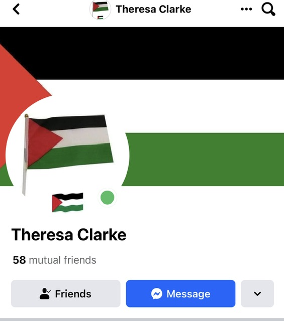 وقامت تريزا بتغيير صورة البروفايل الخاص بصفحتها على فيسبوك إلى علم فلسطين، كما قامت بنشر العديد من الصور والكلمات الداعمة لفلسطين وأهلها.