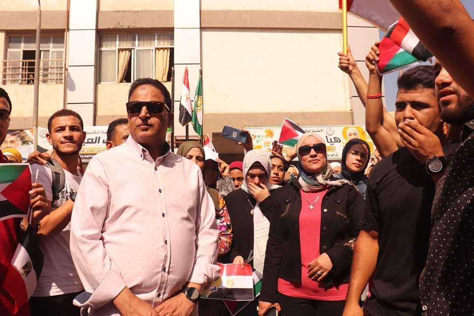 ونظمت كلية التربية النوعية بجامعة المنوفية، وقفة تضامنية حدادا على أرواح شهداء فلسطين، ونصرا وتضامنا للقضية الفلسطينية، ورفضا للعدوان الإسرائيلي على غزة، وما يتعرض له أهالي غزة من انتهاكات غير آدمية ومحاولات لتهجيرهم، وذلك برعاية الدكتور أحمد القاصد رئيس الجامعة والدكتور محمد زيدان عميد الكلية، والدكتور هيام مصطفى وكيل الكلية لشئون التعليم والطلاب والدكتور محمد حسان أمين الكلية وتحت إشراف شريف عبد الجليل مدير إدارة رعاية الطلاب وبالتعاون مع أسرة طلاب من أجل مصر.