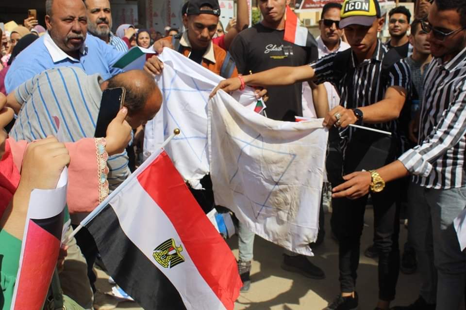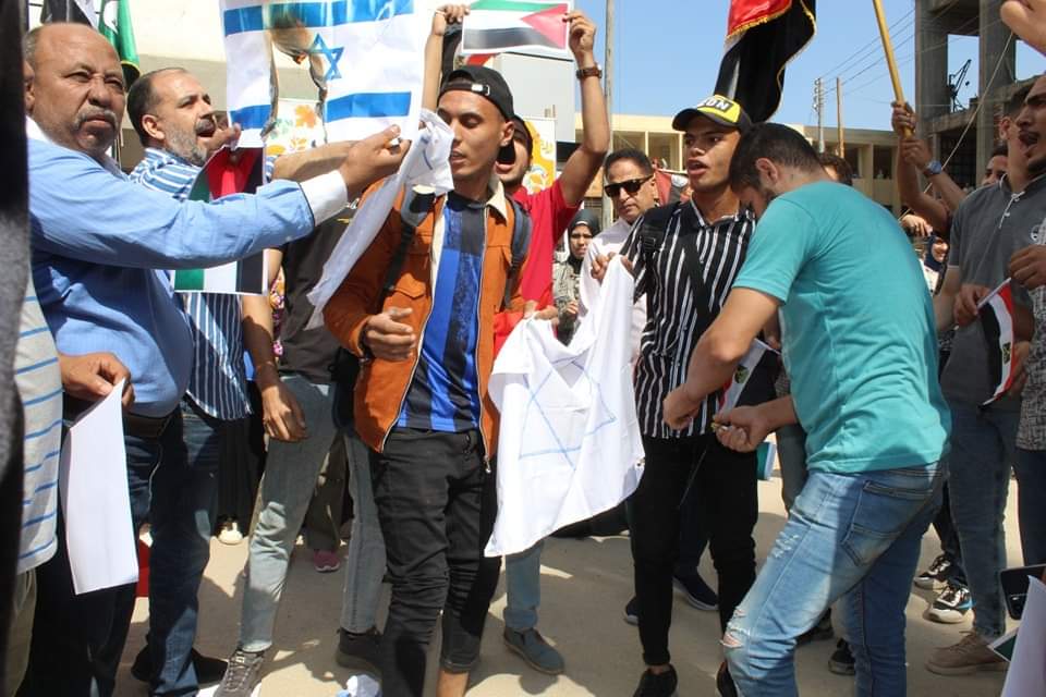 حرق علم إسرائيل في مظاهرات طلاب جامعة المنوفية
