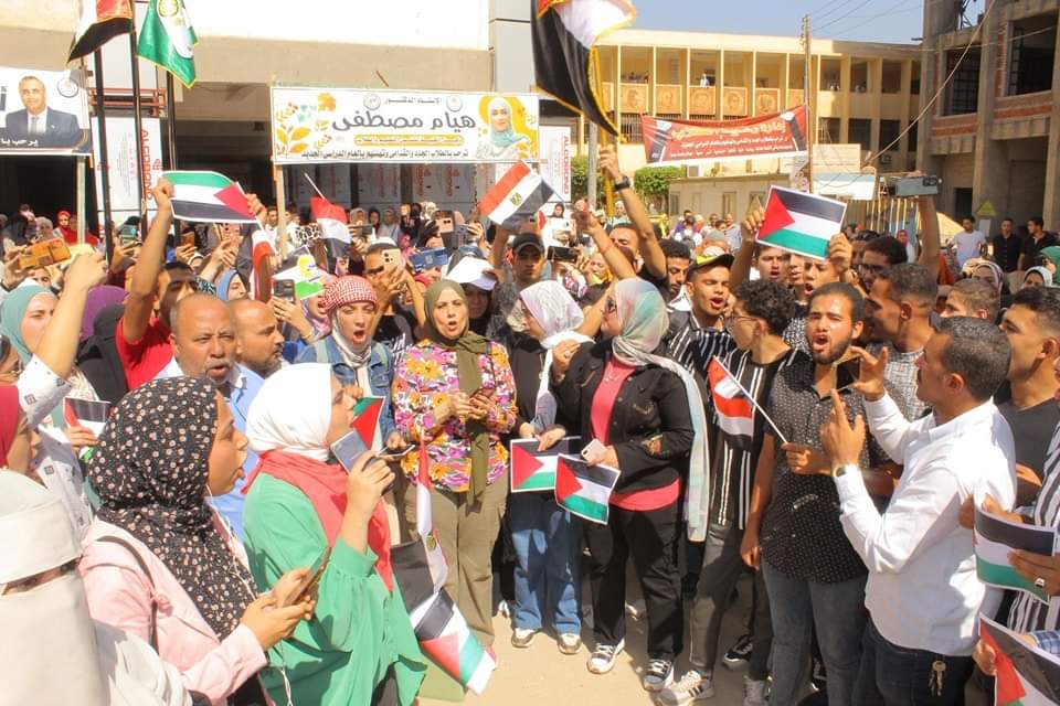 حرق علم إسرائيل في مسيرة طلابية داخل كلية التربية النوعية بالمنوفية احتجاجا على الأوضاع المأساوية بغزة |صور