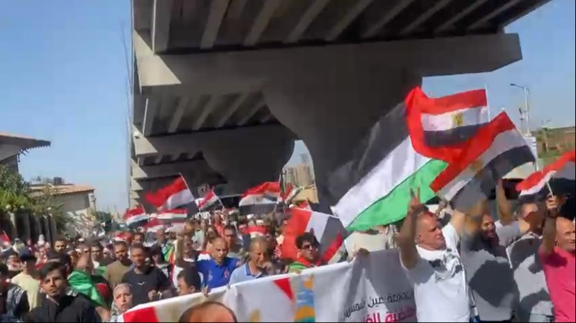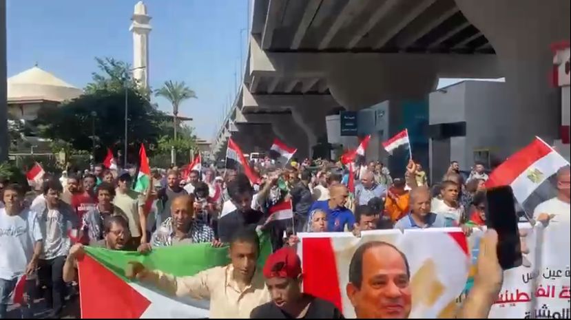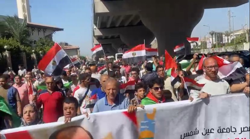 وفي مشهد مهيب خرج طلاب جامعة عين شمس في مظاهرة، للتنديد بالعدوان الغاشم وما فعله في الإخوة الفلسطينيين على مدار الأيام الماضية، من قتل وقصف وتفجير، ولدعم الموقف الرافض لتهجير الفلسطينيين من أراضيهم إلى سيناء.