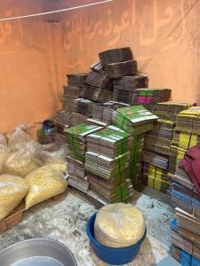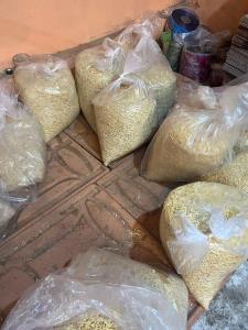 وعثر بداخل المصنع على عدد 2568 كيس شعرية مقلية - 264 كيلوجراما مواد خام جميعها مجهولة المصدر ودون مستندات تدل على مصدرها - 2000 كرتونة فارغة.