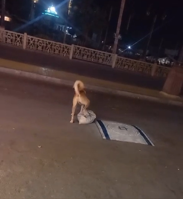 وأضاف محمد: أنه من المفارقات أن كلبا من كلاب الشوارع طاف حول العلم المرسوم على غطاء المجارى للكيان المحتل ثم بال عليه وانصرف وكذلك الخيول في عربات الحنطور دون حتى أن يخبرهم أحد بفعل ذلك.