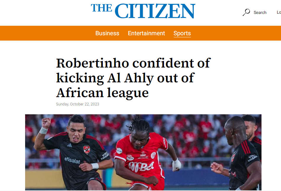 وعلى جانب آخر، نشر موقع ذا سيتيزن خبرًا بعنوان “روبيرتينيو واثق من طرد الأهلي من الدوري الإفريقي”، أشارت فيه إلى حديث المدير الفني لفريق سيمبا أيضًا.