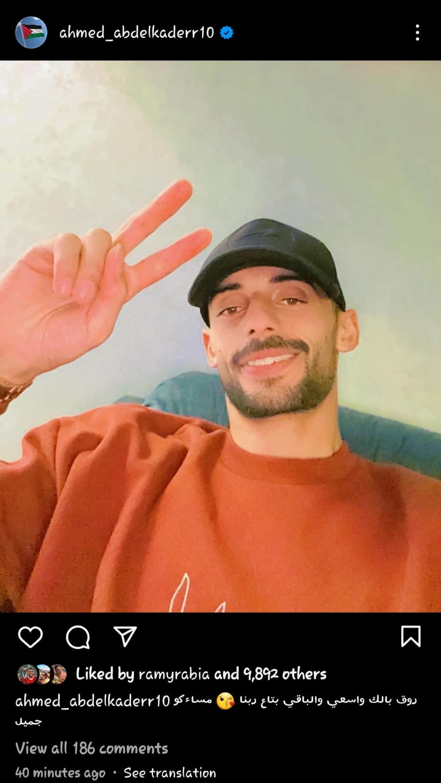 في السياق ذاته كتب أحمد عبد القادر منشور عبر حسابه على وسائل التواصل الاجتماعي إنستجرام، يقول فيه: روّق بالك واسعى والباقي بتاع ربنا مساءكو جميل.