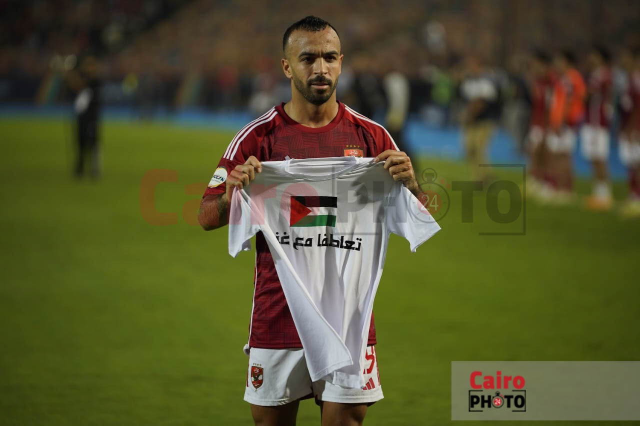 وحرص محمد مجدي أفشة، لاعب الفريق الأول لكرة القدم بالنادي الأهلي، على دعم مع القضية الفلسطينية عقب نهاية المباراة، بارتدائه قميصًا أبيضًا عليه علم فلسطين وشعار تعاطفًا مع غزة، إضافة إلى رفع علامة النصر.