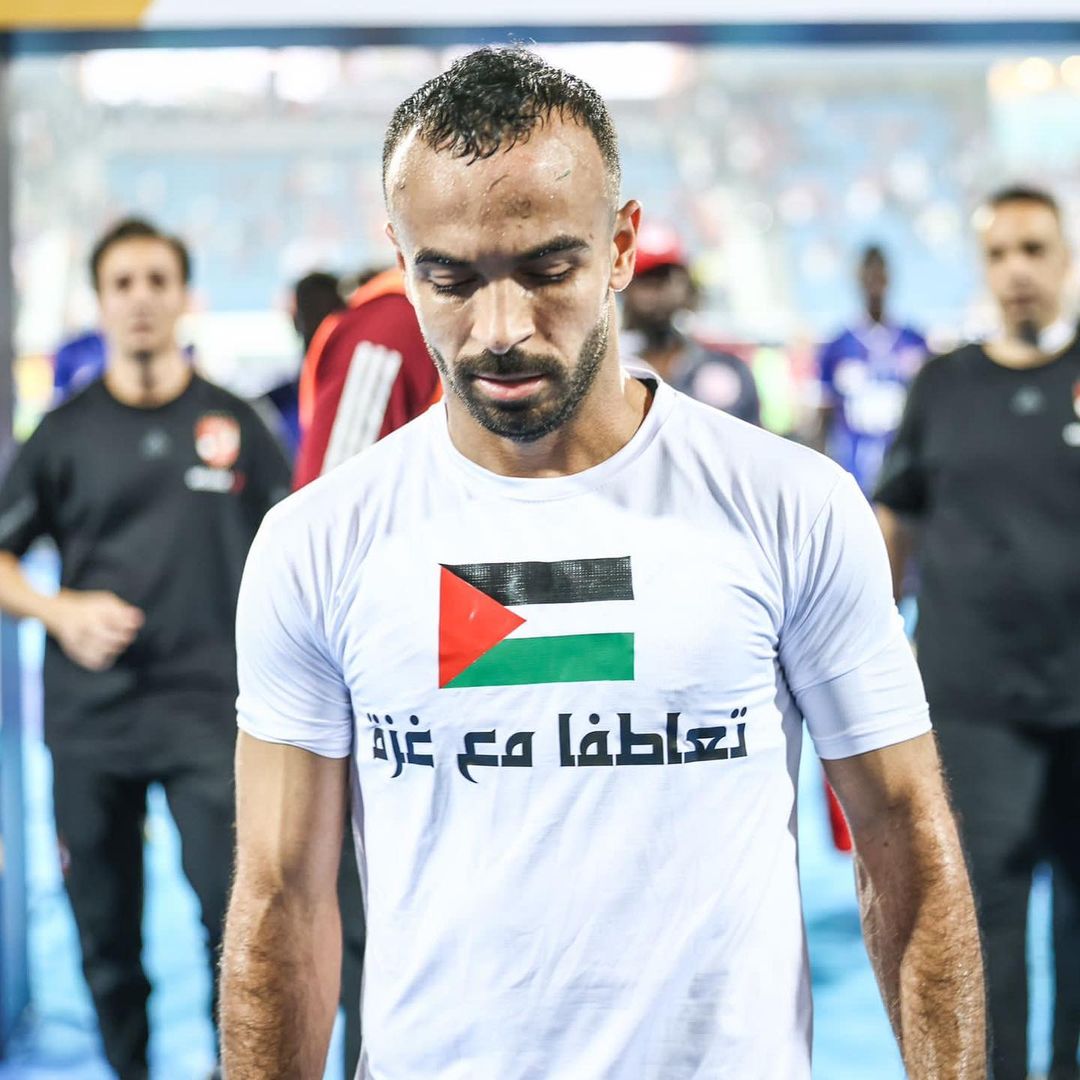 وظهر محمد مجدي أفشة بعد مباراة الأهلي وسيمبا بقميص مكتوب عليه “ تعاطفًا مع غزة”، وحرص لاعب الأهلي على نشر صورًا له بقميص دعم فلسطين.