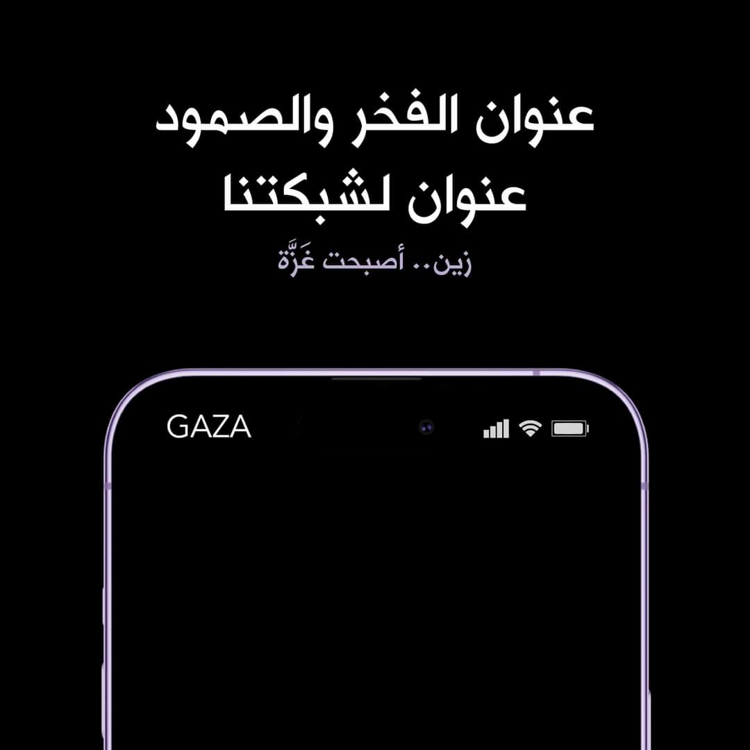 وكتبت زين عبر صفحتها الشخصية بموقع التواصل الاجتماعي فيسبوك: عنوان الفخر والصمود.. عنوان لشبكتنا.. زين أصبحت غزة، وظهر معها صورة مرفقة توضح استبدال العلامة زين على الهواتف لـ Gaza.