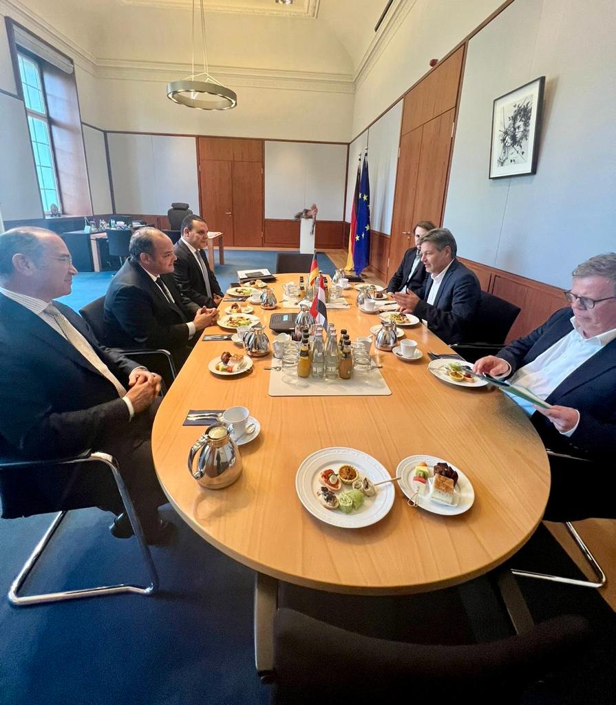 التقى المهندس أحمد سمير وزير التجارة والصناعة، روبرت هابك نائب المستشار الألماني ووزير الشئون الاقتصادية وحماية المناخ في مستهل زيارته للعاصمة الألمانية برلين، حيث استعرض اللقاء سبل تعزيز العلاقات الاقتصادية المشتركة وتطورات الوضع الاقتصادي العالمي وعدد من الملفات ذات الاهتمام المشترك.