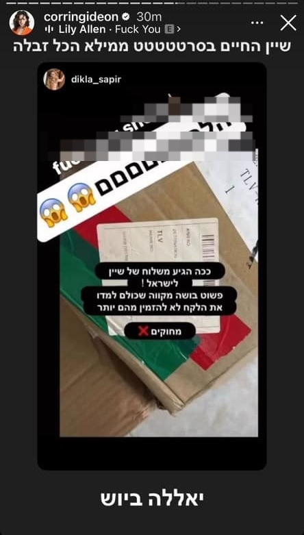 وقالت أخرى: نشرت إحدى الأشخاص بالأمس أنها استلمت طردًا عليه ملصق العلم الفلسطيني.
