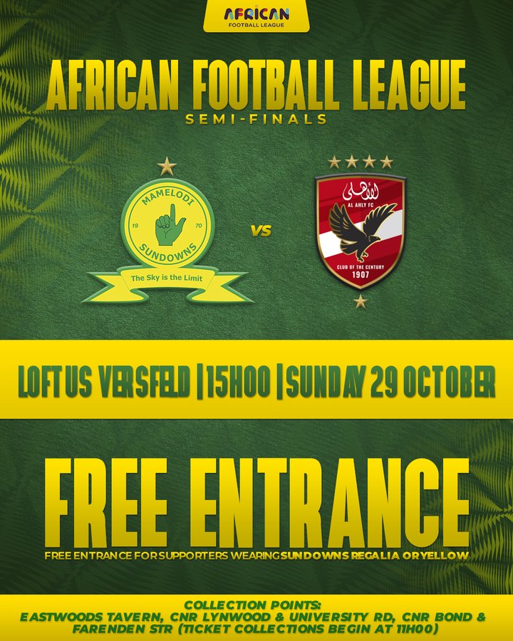 أعلن نادي صن داونز الجنوب إفريقي فتح مدرجاته بشكل مجاني لجماهيره في مباراته أمام الأهلي في نصف نهائي بطولة الدوري الإفريقي.