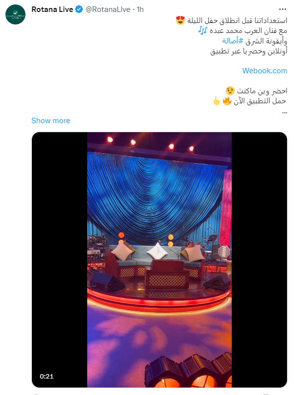 سبق وروجت شركة روتانا لحفل المطربة السورية أصالة نصري رفقة المطرب السعودي محمد عبده، وذلك من خلال حسابها على موقع X تويتر سابقا، إذ كتبت: استعداداتنا قبل انطلاق حفل الليلة مع فنان العرب محمد عبده، وأيقونة الشرق أصالة، أونلاين.