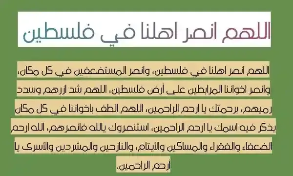 - اللهم انصر عبادك المستضعفين في فلسطين.