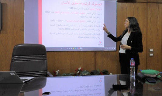 و تضمن البرنامج التدريبي التعريف باللجنة الدولية للصليب الأحمر وأنشطتها على المستويين المحلى والدولي، وكذا دور اللجنة الدولية للصليب الأحمر فى النزاعات المسلحة، فضلًا عن التعريف بالقانون الدولي الإنساني وعلاقته بالقانون الدولي لحقوق الإنسان.