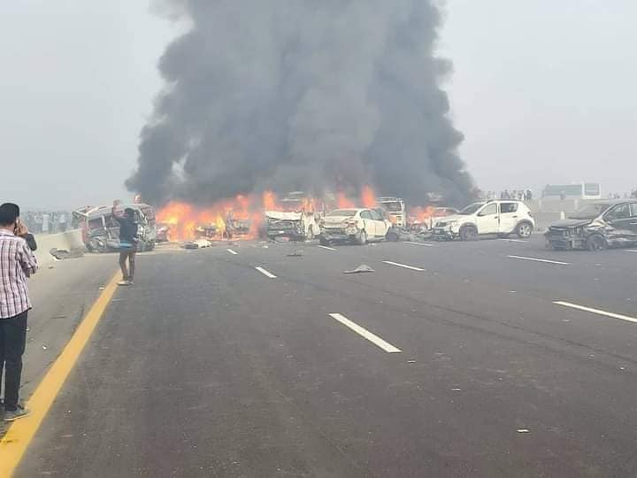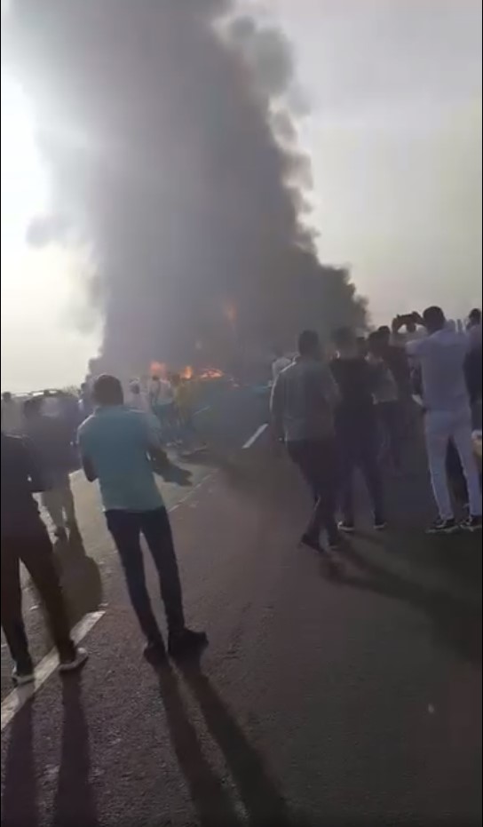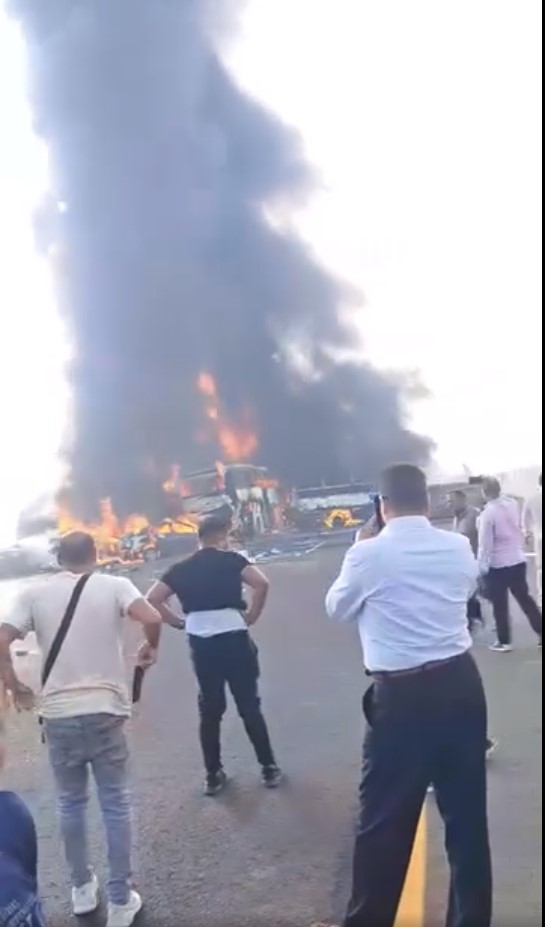 تفحمت 3 حافلات نقل جماعي و10 سيارات ملاكي أعلى طريق مصر إسكندرية الصحراوي اتجاه القاهرة، نتيجة تصادم عدد كبير من السيارات أعلى الطريق، وتم نقل المصابين الذين بلغ عددهم أكثر من 45 مصاب إلى عدد من المستشفيات لتلقي العلاج اللازم.