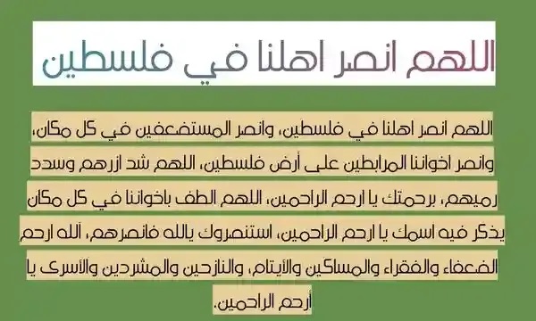 - اللهم انصر أهل فلسطين في غزة والضغة الغربية.