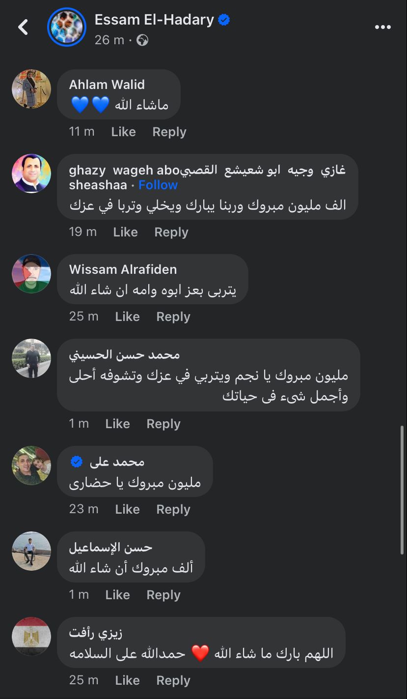 وحرص عصام الحضري، حارس مرمى منتخب مصر السابق على مشاركة هذا الحدث السعيد مع المتابعين عبر منصات التواصل الاجتماعي، لينهال على منشوره سيل من تعليقات الجمهور، مباركين ومهنئين له، كونه أصبح جدا.