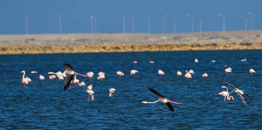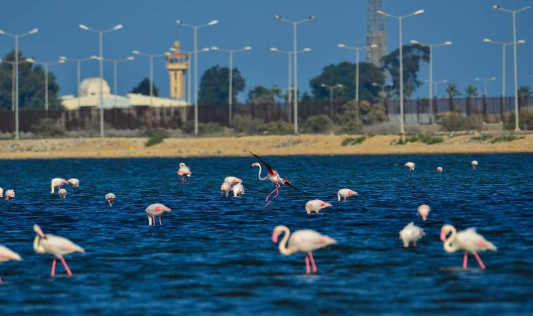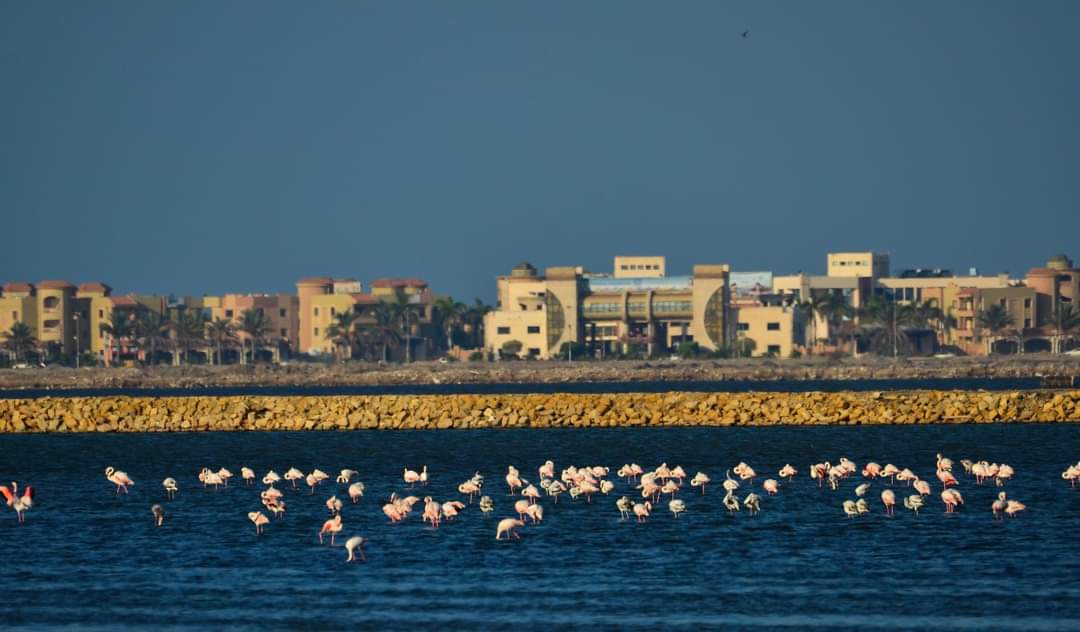 يعشق بورسعيد ويقطع أميالا للوصول إليها ويتجاوز عددا من المحميات حتى يصل إلى معشوقته.. إنه طائر الفلامنجو الذي ظهر منذ ساعات بمحمية بور فؤاد الطبيعية، بالقرب من تفريعة شرق بورسعيد ومساكن الفيروز الجديدة.