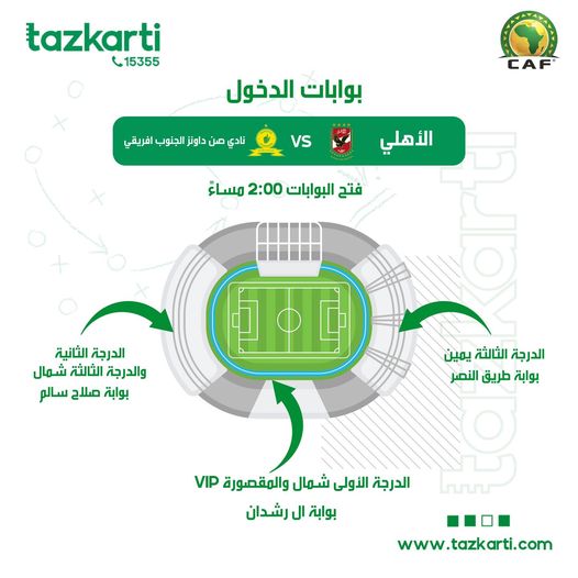 تذكرتي تعلن عن إرشادات مباراة الأهلي وصن داونز لتيسير عملية دخول الجماهير