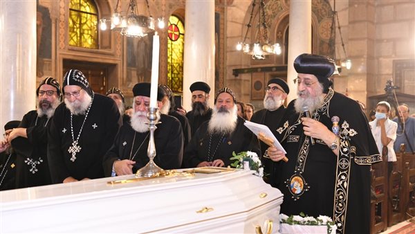 البابا تواضروس يصلي تجنيز نيافة الأنبا أثناسيوس بالكنيسة البطرسية