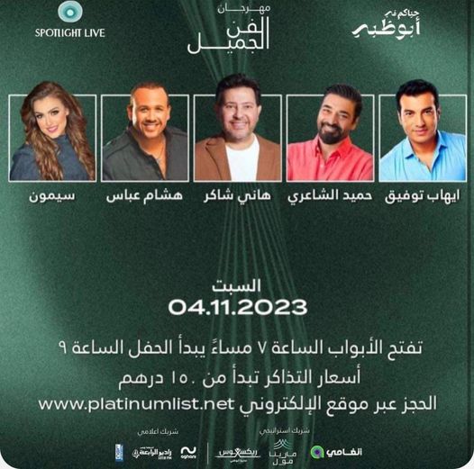 يقود أمير الغناء العربي الفنان هاني شاكر، نقيب الموسيقيين السباق، غدا السبت، حفلًا غنائيًا في أبو ظبي بالإمارات يحمل اسم مهرجان الفن الجميل.