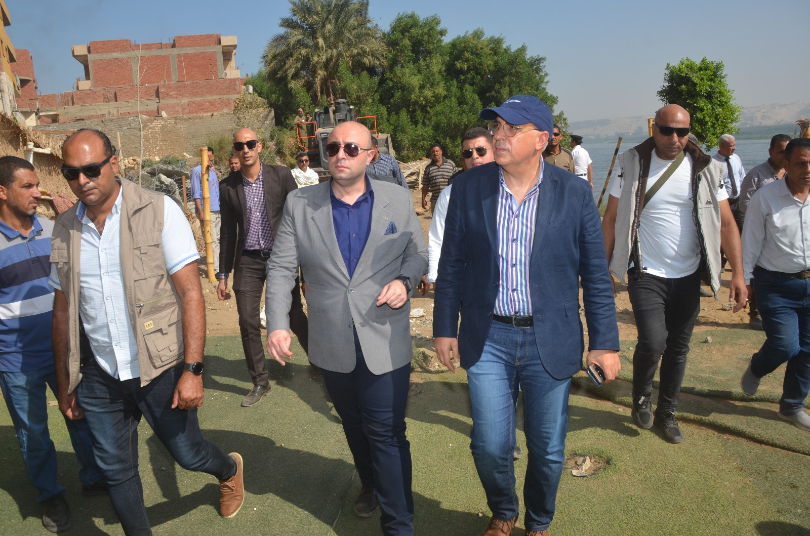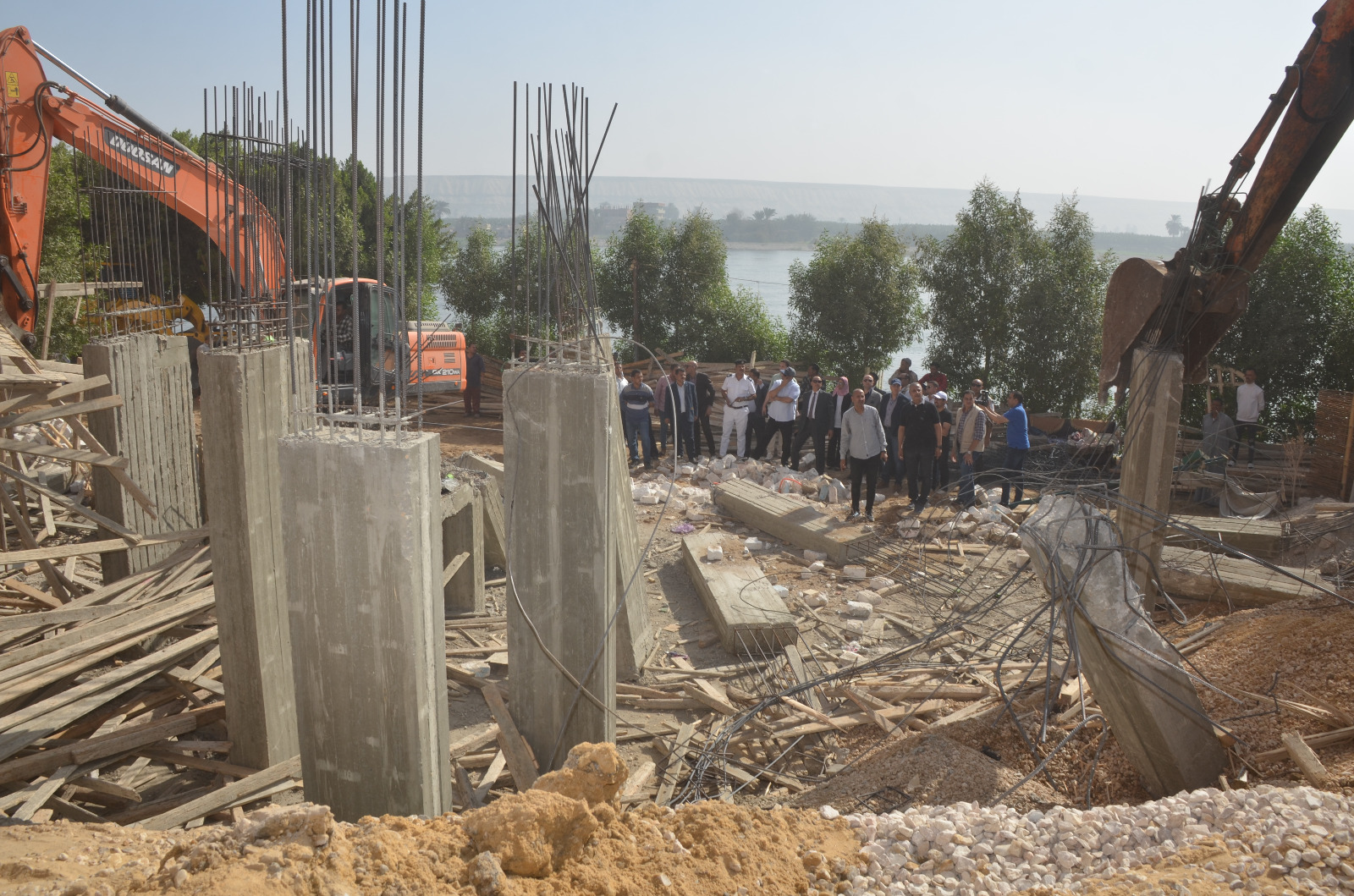 وزير الري ومحافظ بني سويف يتابعان أعمال إزالة مبانٍ مخالفة تحت الإنشاء على النيل | صور
