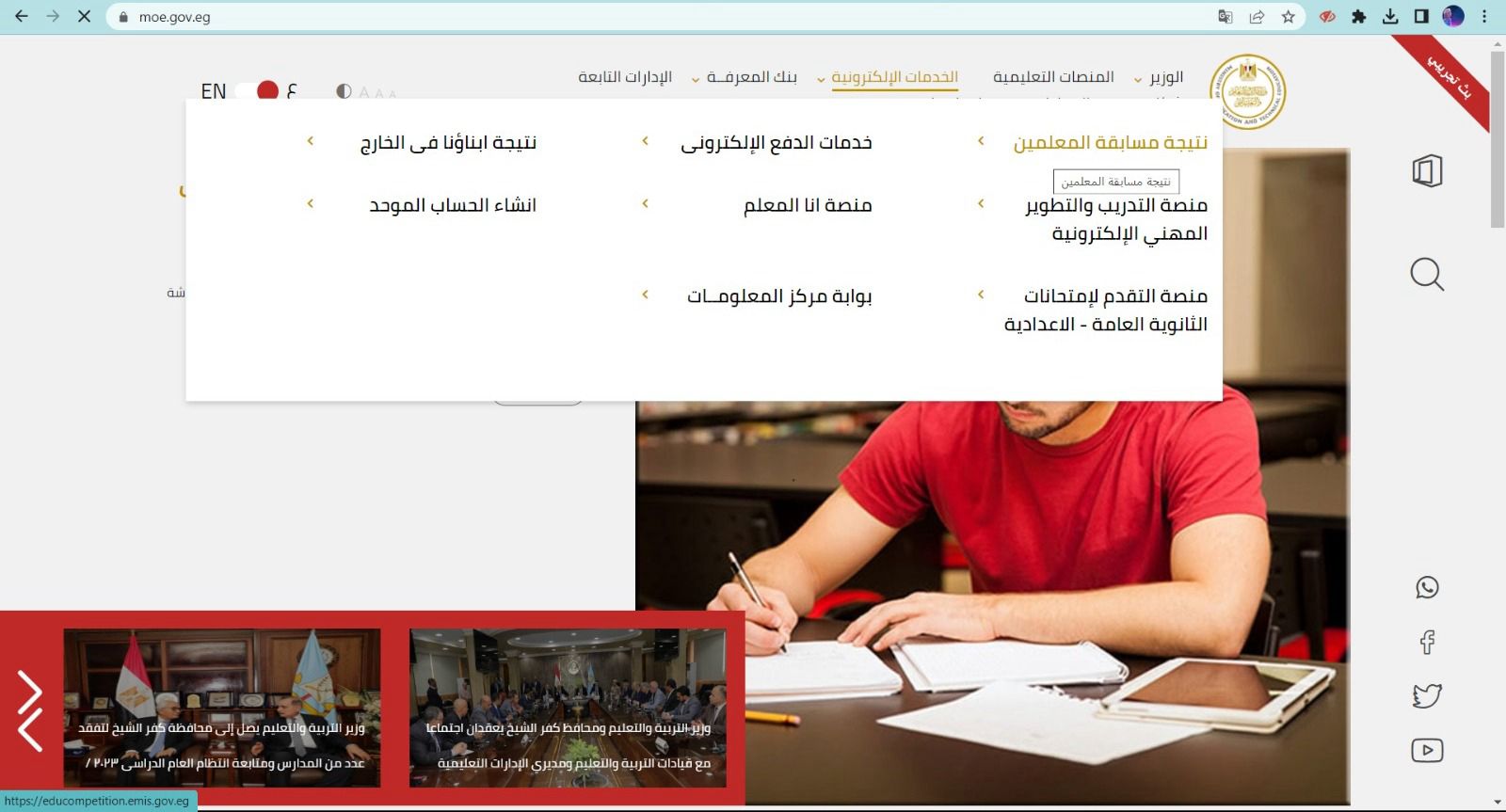 رابط الاستعلام عن نتيجة مسابقة الـ30 ألف معلم بالرقم القومي.. أتاحته وزارة التربية والتعليم والتعليم الفني عبر موقعها الرسمي، على من يرغب في إعادة اجتياز التدريبات التقدم بطلب للمديرية التابع لها؛ إذ تنسق الوزارة مع الجهة المعنية بتحديد موعد المحاولة الأخرى؛ لاجتياز هذه التدريبات للتأكد من زوال سبب عدم الاجتياز.