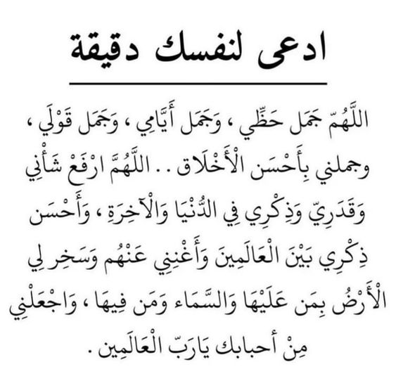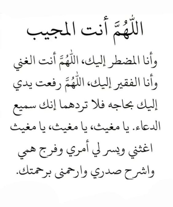 - اللهم املأ قلبي بكل ما فيه الخير لي، اللهم اجعل طريقي مسهلًا وأيامي القادمة أفضل من سابقاتها، أدعوك يا إلهي دعاء من اشتدت به فاقته، وضعفت قوته، وقلت حيلته، دعاء الملهوف المكروب.