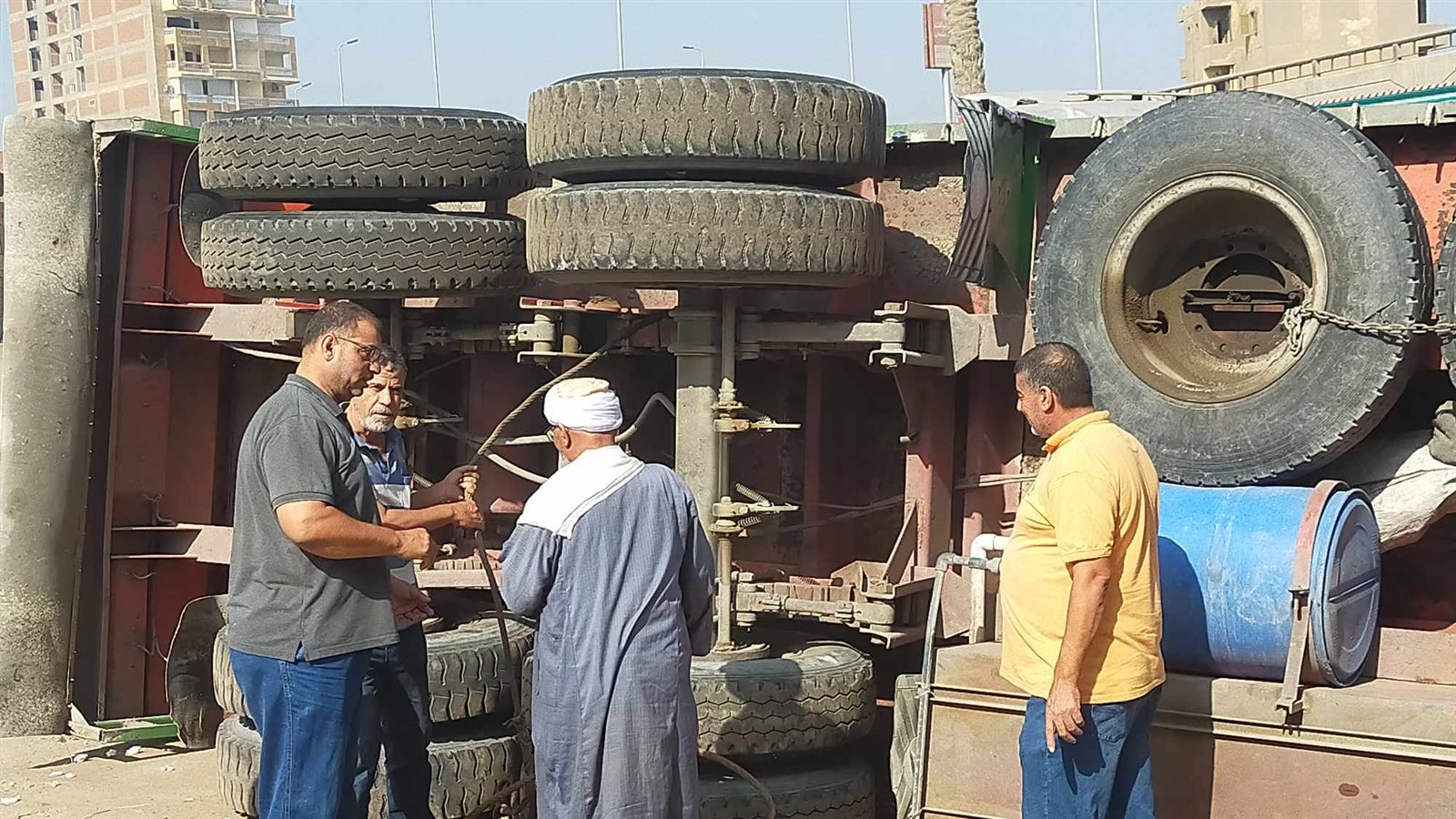 بسبب الشبورة.. انقلاب سيارة نقل محملة بالقطن في الغربية | صور