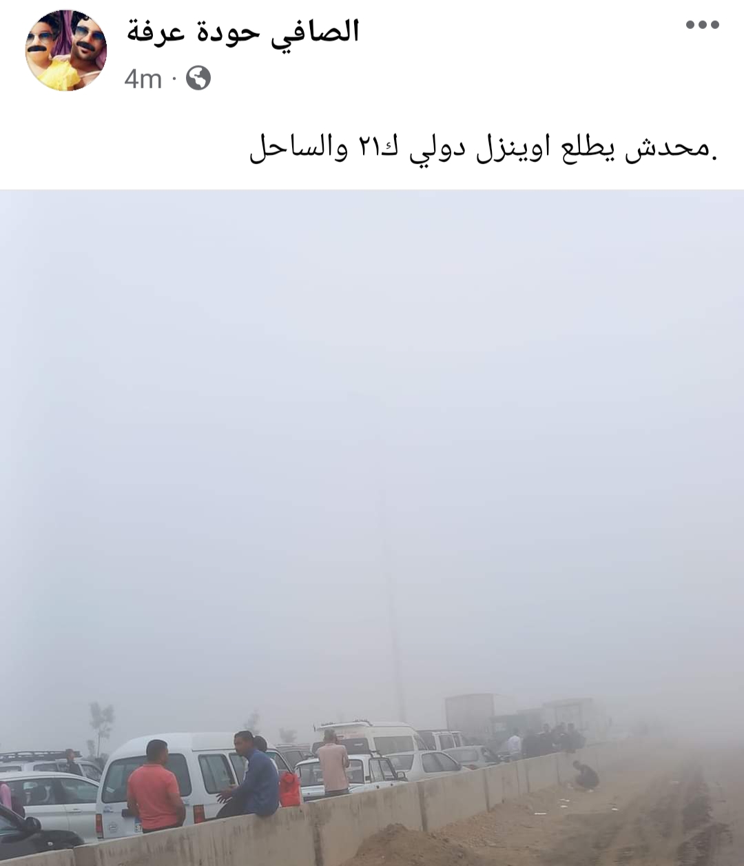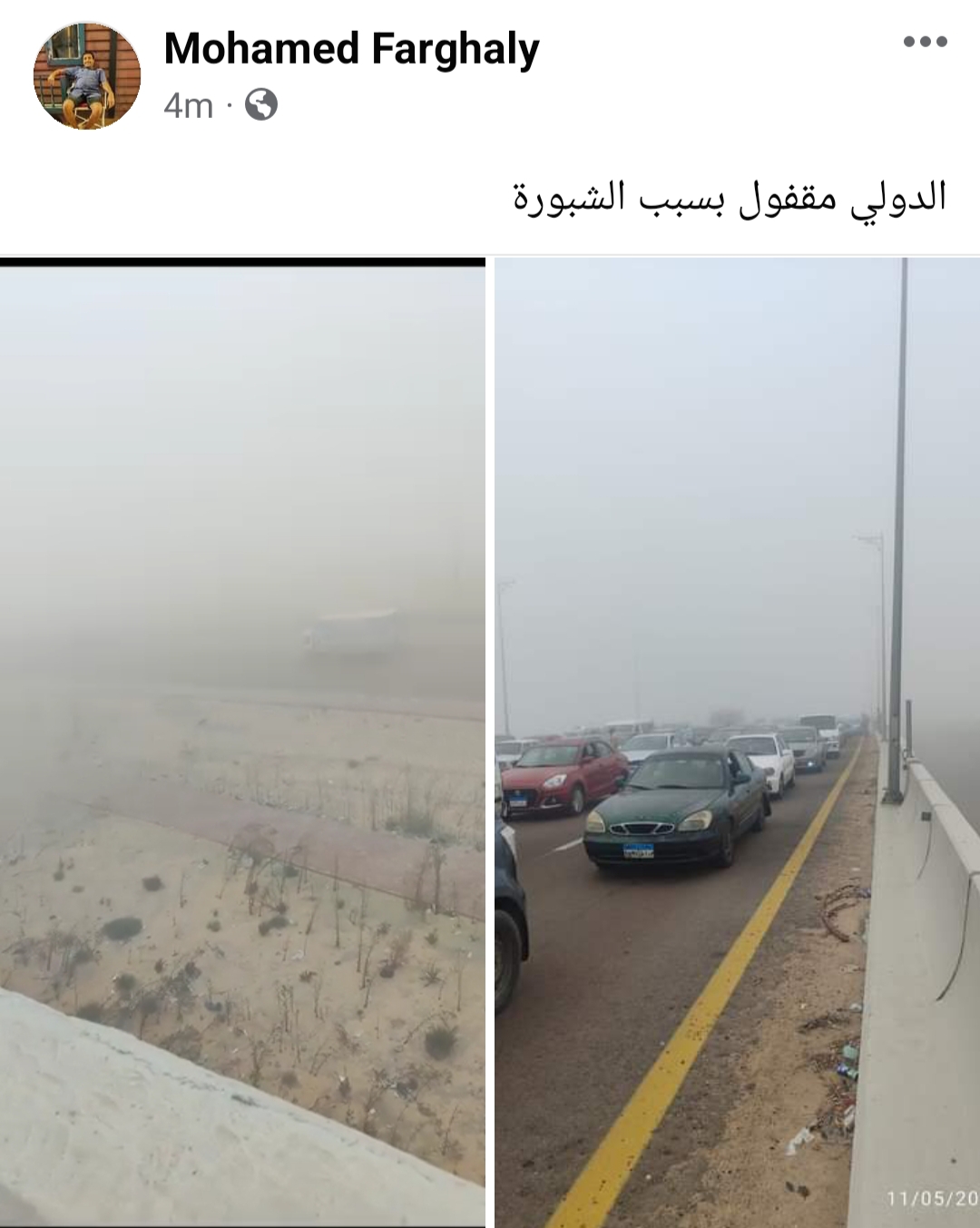 وتعرضت عدد من محافظات مصر منذ الصباح الباكر اليوم لشبورة مائية كثيفة، زادت شدتها من الساعة السابعة والنصف صباحا، وتسببت الشبورة في حجب كامل للرؤية؛ ما تبعه اتخاذ قرار سريع بوقف حركة السيارات المارة بداية من الموقف الجديد في الاتجاهين الصحراوي والدولي، وذلك تفاديا لوقوع حوادث وحتى حتى انتهاء الشبورة.