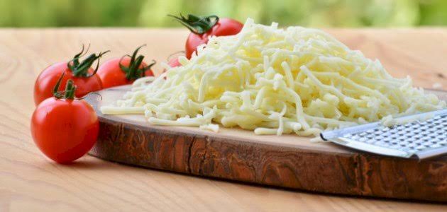 - وفي الخطوة السادسة يتم إخراج الجبنة من الفريزر وبشرها بحيث تكون جاهزة فيما بعد وضعها على البيتزا أو البطاطس المهروسة أو سندوتشات الشاورما.