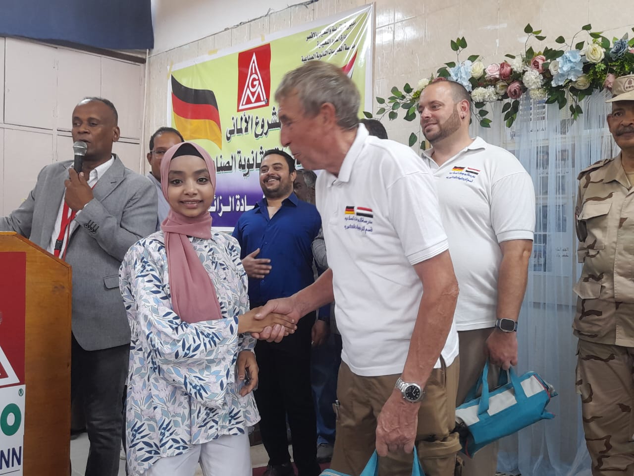 حضر الاحتفالية كل من الدكتور عبده الضوي مدير إدارة الطود التعليمية، والنائب محمد عطاالله عضو مجلس الشيوخ والسيده جيزا فون مسؤولة الجانب الألمانى، وعبد الرحمن احمد حسين مدير التعليم الفني، وعدد من أسر الطلاب المتخرجين وأهالي مدينة الطود.
