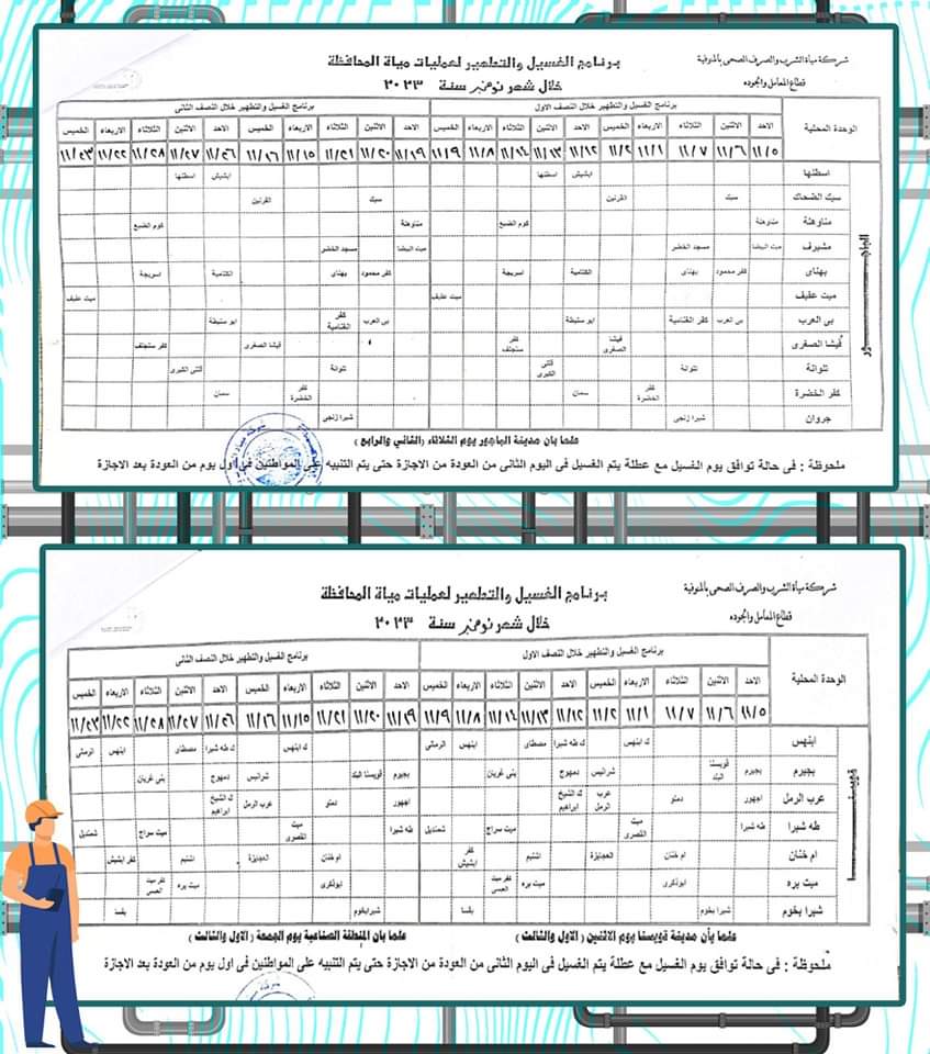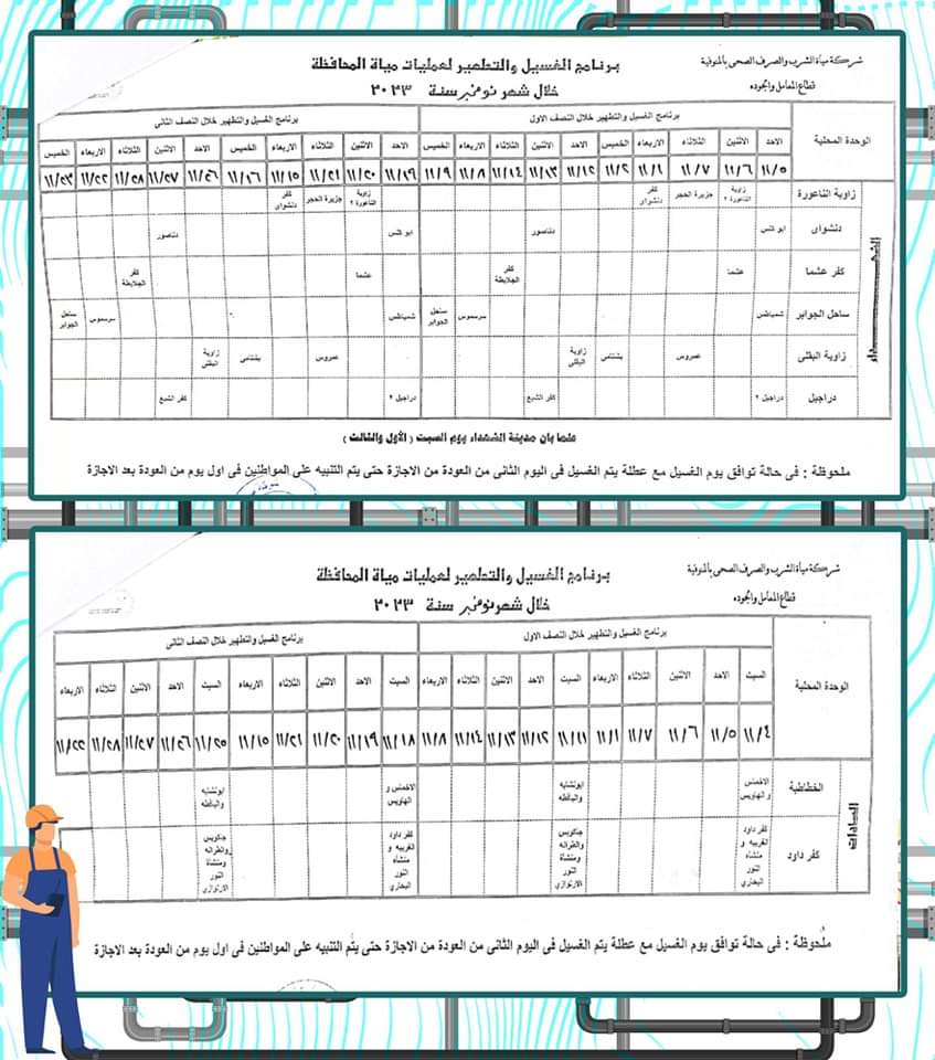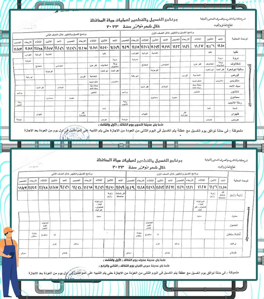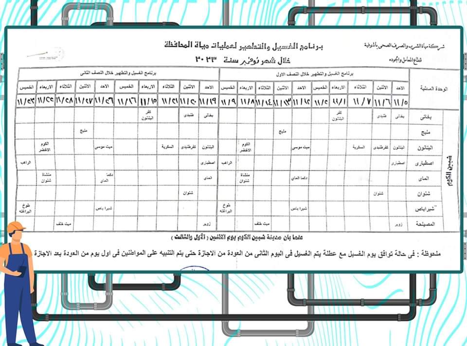 ننشر مواعيد انقطاع المياه بالمنوفية خلال شهر نوفمبر