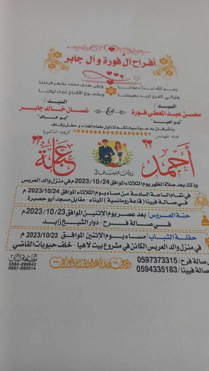 هّم أحمد فورة العريس بالتوجه إلى قطاع غزة من الضفة الغربية، قبل عملية طوفان الأقصى في 7 أكتوبر الماضي، لاستخراج تصاريح الزفاف المطلوبة بصحبة أهله، تاركًا عبلة جابر خطيبته على أمل العودة مجددًا لإقامة حفل زفافهما.
