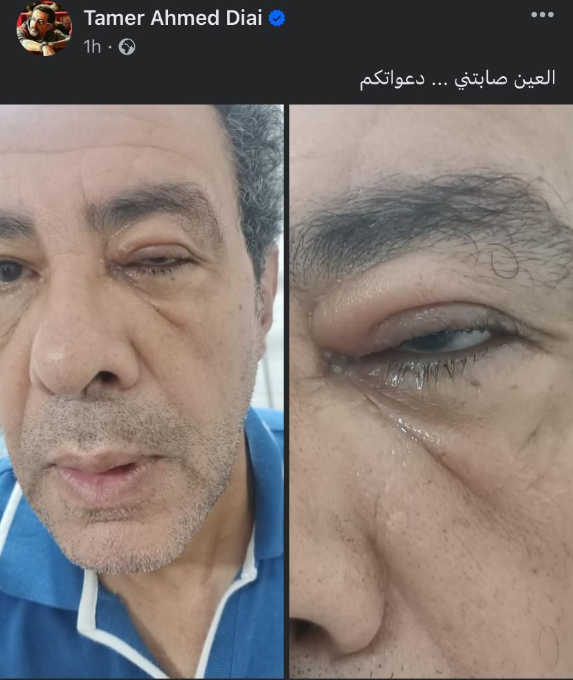 كشف الفنان تامر ضيائي، إصابته في عينه، نتيجة لتعرضه لوعكة صحية شديدة، مطالبًا الجمهور بالدعاء له بالشفاء العاجل.