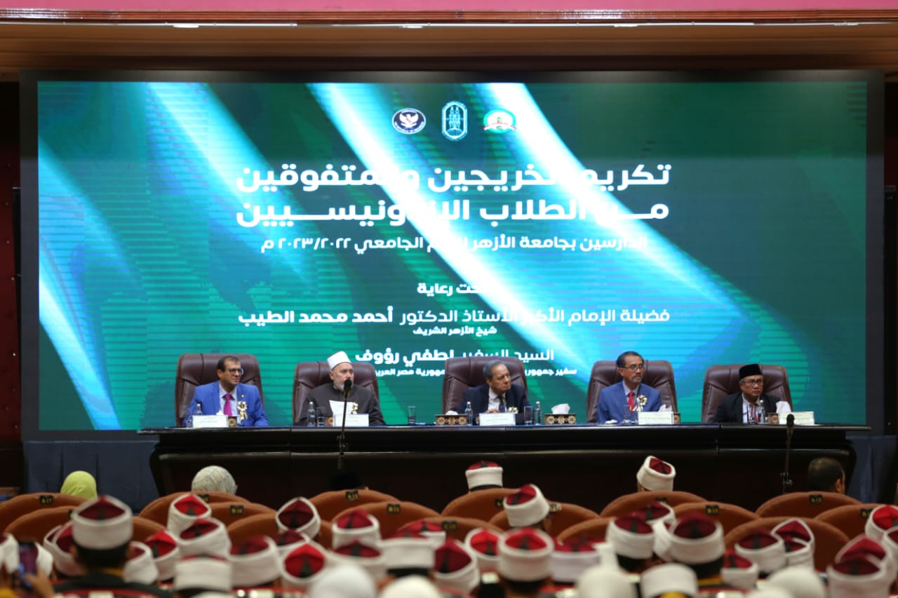 واصل علماء الأزهر الشريف وقيادات السفارة الإندونيسية بالقاهرة، تكريم الخريجين والمتفوقين من الطلاب الإندونيسيين خريجي الأزهر الشريف.