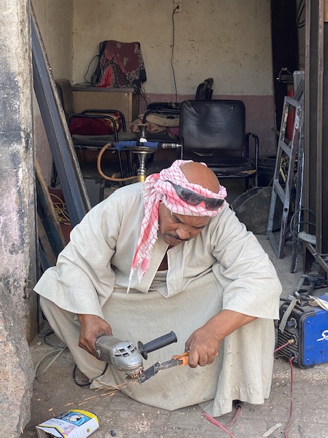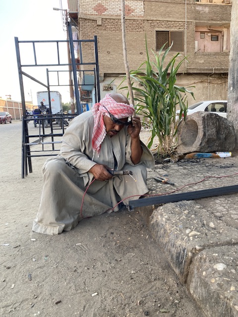 يجلس في ورشته الصغيرة المتواضعة في قلب مدينة الأقصر منهمكًا على قطع من الحديد فيشكل منها أسرّة متعددة الأشكال والأنواع من سرير مفرد إلى سرير بطابقين مزدوج.