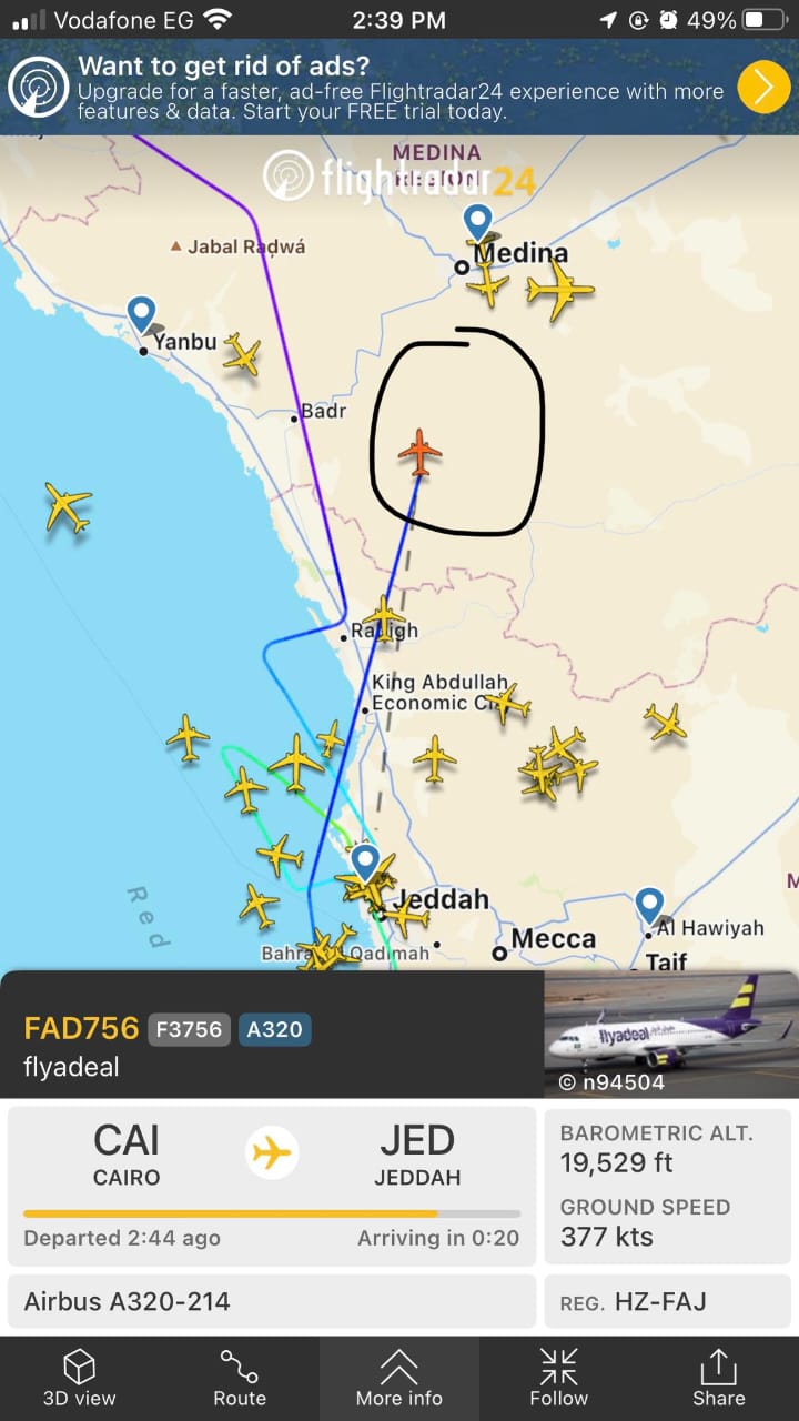وكانت إحدى الرحلات المتجهة من مطار القاهرة إلى مدينة جدة كان مقررا هبوطها في تمام الساعة 12:30 بمطار جدة لم تهبط حتى الآن بسبب السيول، وحفظ الطيار السرعات بعد أن منعته السلطات السعودية من الهبوط وجرى السير في أماكن متفرقة بالمملكة حتى وجهت السلطات السعودية الطائرات إلى مطارات المدينة المنورة وغيرها من المدن، وحتى هذه اللحظة لم يتمكن الطيران من الدخول لمطار جدة.