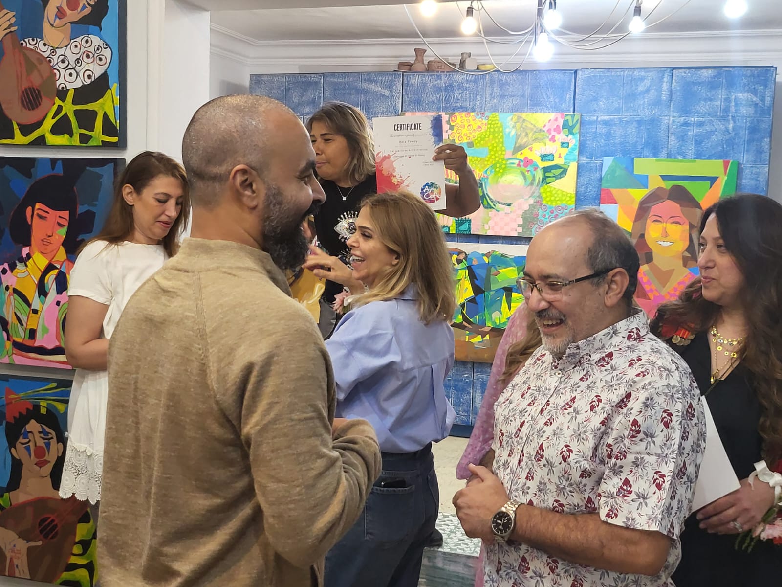 ومن جانبه قال الفنان التشكيلي الدكتور إسلام الريحاني المشرف على المعرض واحد العارضين: الفن هو وسيلتنا الوحيدة للتعبير عن تضامنا الإنساني مع كل محتاج خاصا أخواتنا في فلسطين.