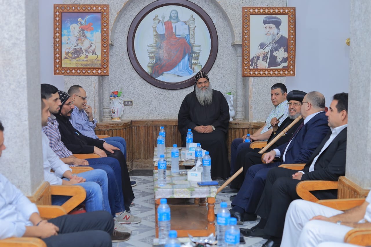 وكان في استقبالهم، نيافة الأنبا مرقس مطران شبرا الخيمة والنائب البابوي للدير، والراهب القمص توماس الرزيقي أمين الدير، والراهب القس فام الرزيقي مسئول أمن الدير.