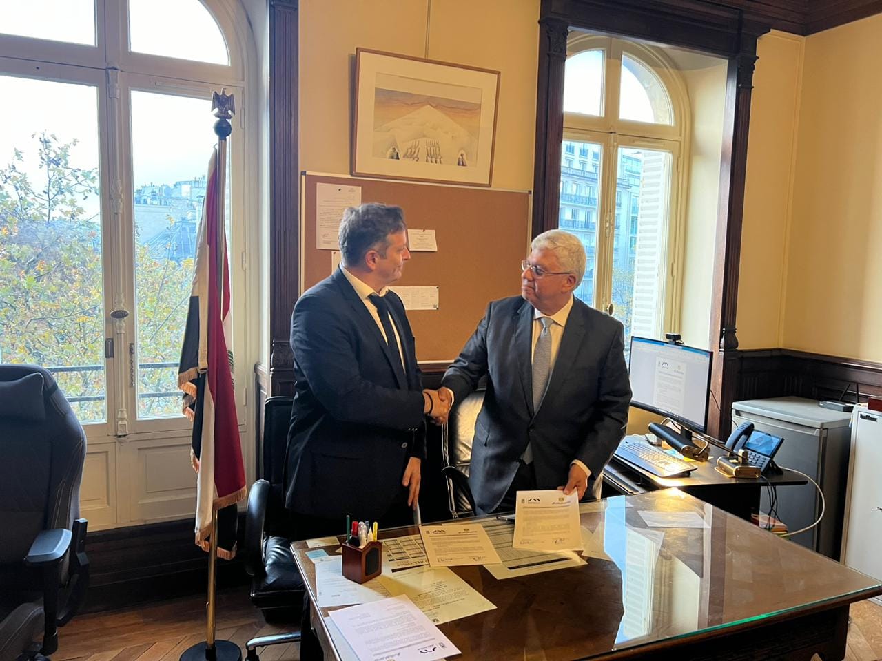 التقى الدكتور محمد أيمن عاشور، وزير التعليم العالي والبحث العلمي، وفدا من جامعة ليون، برئاسة الدكتور مانويل جوبيرت نائب رئيس الجامعة لشئون أوروبا والعلاقات الدولية، بحضور الدكتور شريف صالح رئيس قطاع الشئون الثقافية والبعثات، والدكتور نور السبكي الملحق الثقافي المصري بباريس، وإليدا هلي مدير مشروعات الشرق الأدنى والأوسط، وذلك على هامش زيارته لباريس للمُشاركة فى أعمال الدورة 42 للمؤتمر العام لليونسكو، والتي تُعقد خلال الفترة من 7 حتى 22 نوفمبر الجاري.