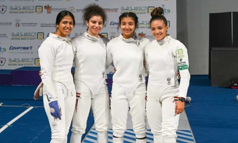 ويتكون فريق سيدات سلاح سيف المبارزة المصري، من هايدي عادل، وناردين إيهاب، ولولوة سليمان، وآية شريف.