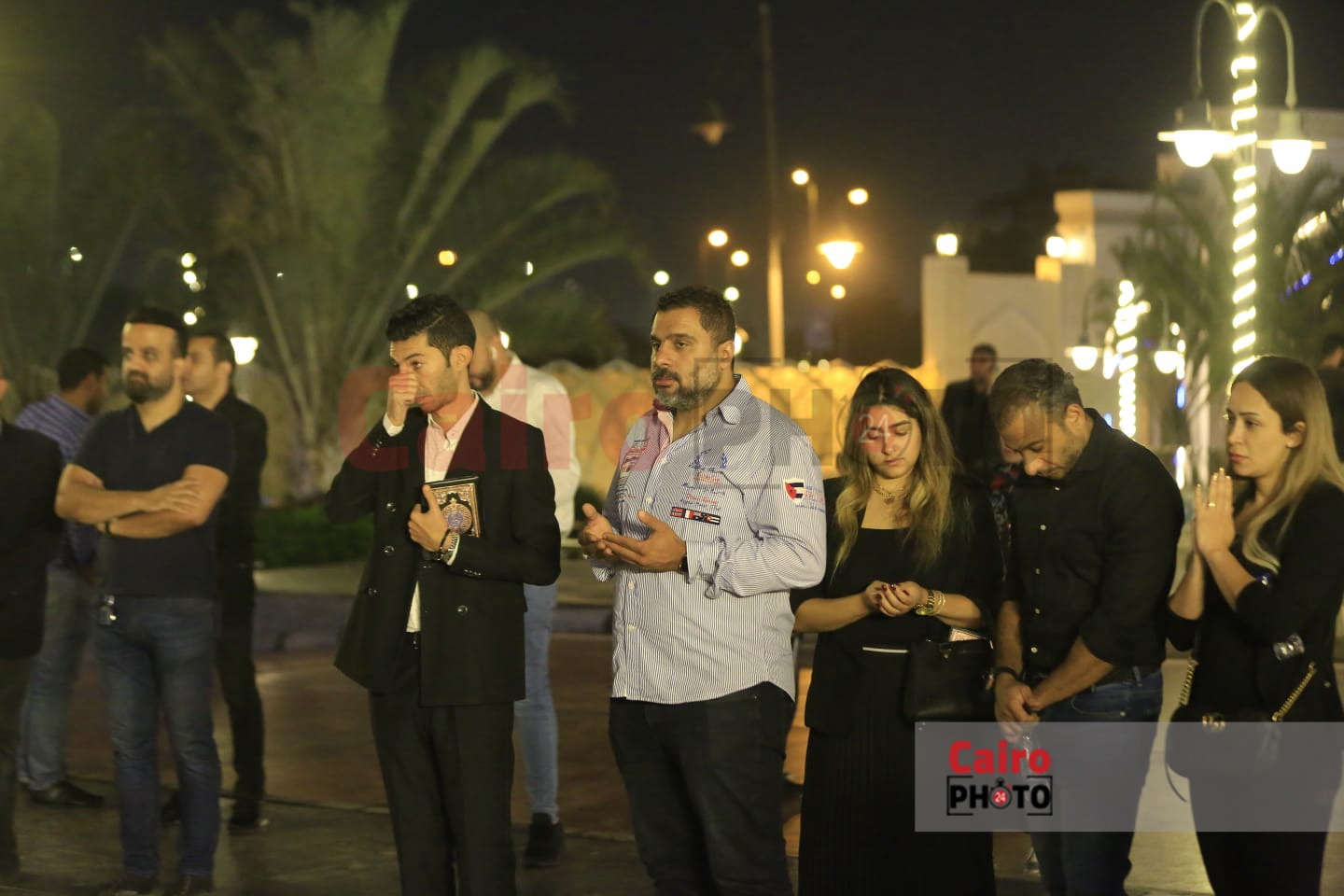 انهيار أسرة المطرب شريف شاكر خلال عزائه بمسجد الشرطة | صور