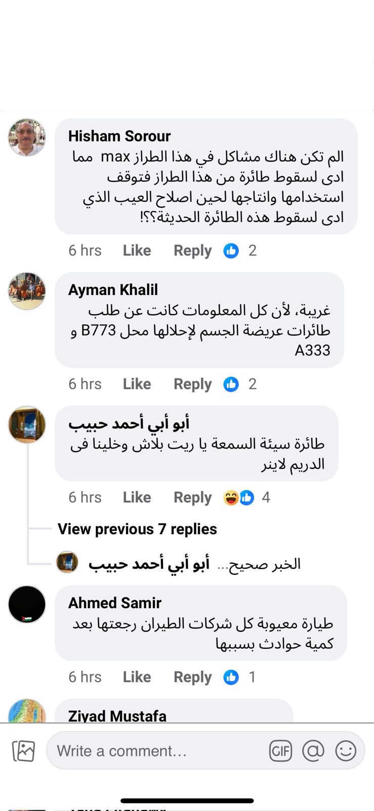 من جانبه، تسأل الطيار هشام سرور، قائلا: “ألم تكن هناك مشاكل من هذا الطراز max؛ مما أدى لسقوط طائرة من هذا الطراز فتوقف استخدامها وإنتاجها لحين إصلاح العيب، الذي تسبب في سقوط هذه الطائرة الحديثة؟”.