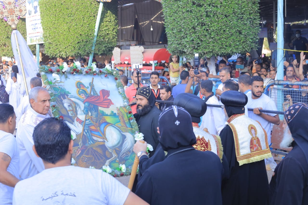 وحضر الآلاف من الزوار المحبين والمريدين صلوات القداسات، وزفة الأيقونة التي تحمل صورة الشهيد مارجرجس، حيث طافت أرجاء الدير وسط إطلاق الزغاريد وإلقاء الحلوى، علاوة على الترانيم والأناشيد التراثية القبطية والعظات اليومية للآباء المطارنة والأساقفة والآباء الكهنة.