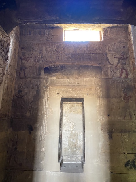 وأضاف كبير عمال معابد الكرنك: تمثلت الآلهة أوبت في شكل نصف سيدة ونصف فرس النهر، لكونها الأم الحامية، كما توجد في المعبد مقصورتان إحداهما لأوزوريس بثلاث فتحات على الأرض حيث تثبت منصته.