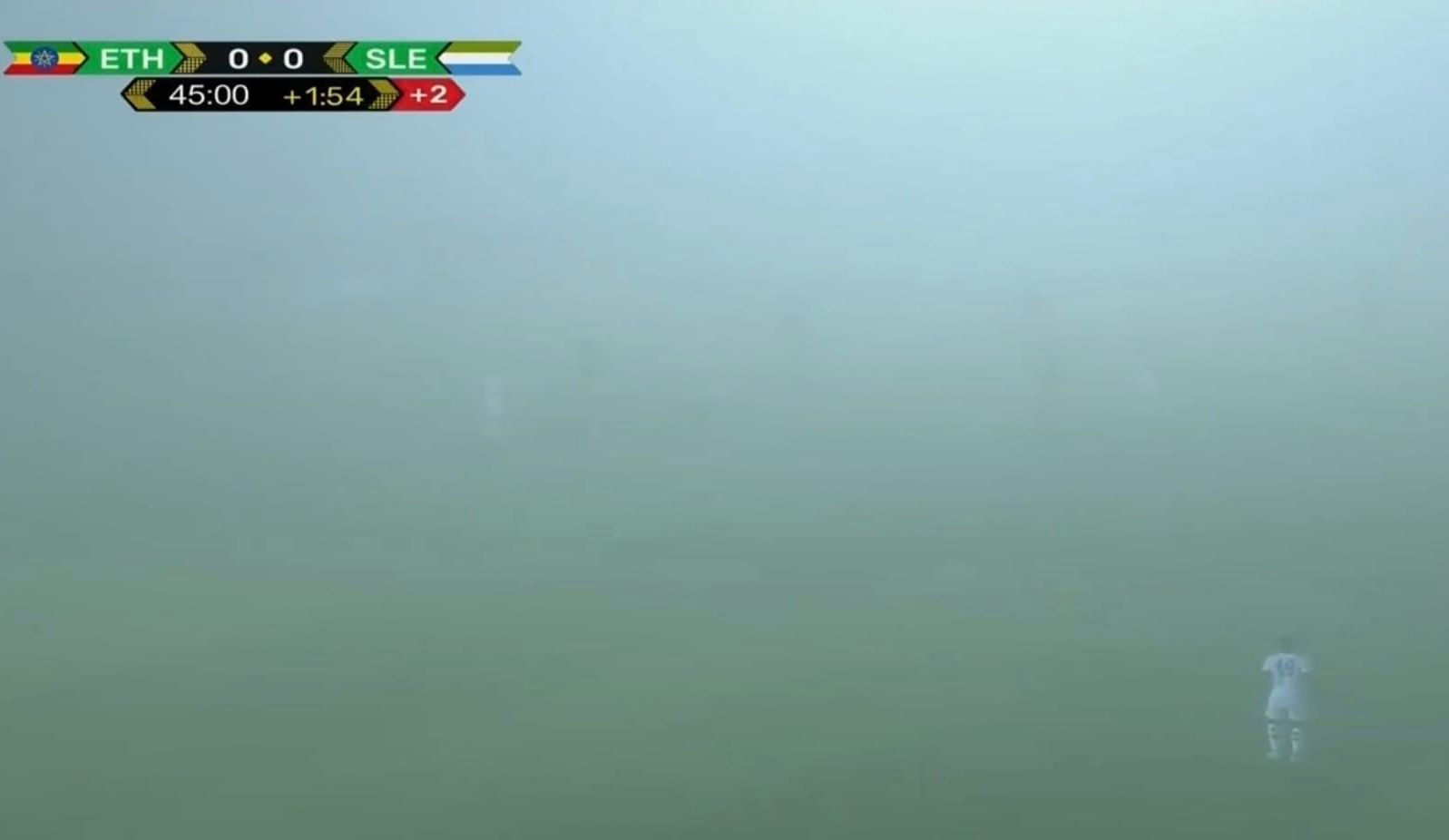 شهدت مباراة إثيوبيا وسيراليون المقامة حاليًا على ملعب ستاد بن أحمد العبدي بالمغرب، حالة من انعدام الرؤية داخل المستطيل الأخضر بسبب الضباب.