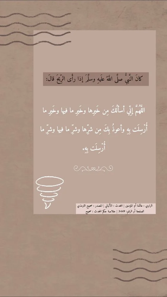 - اللهم اجعلها رياح خير لا هلاك، اللهم إني أعوذ بك من شرها وشر ما فيها وشر ما أرسلت به.