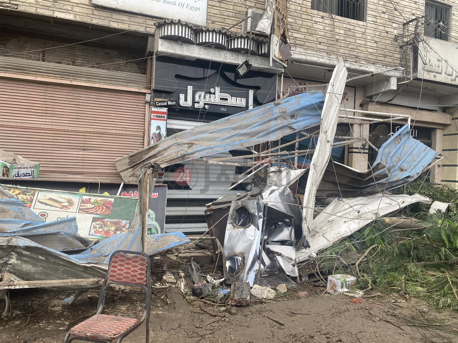 تدمير واجهات محال تجارية بعد اصطدام سيارة نقل بها بالدقهلية