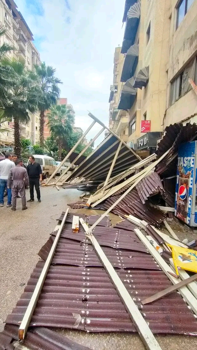 أتلفت 7 سيارات.. سقوط تندة من الطابق العاشر بسبب الطقس بالدقهلية │صور